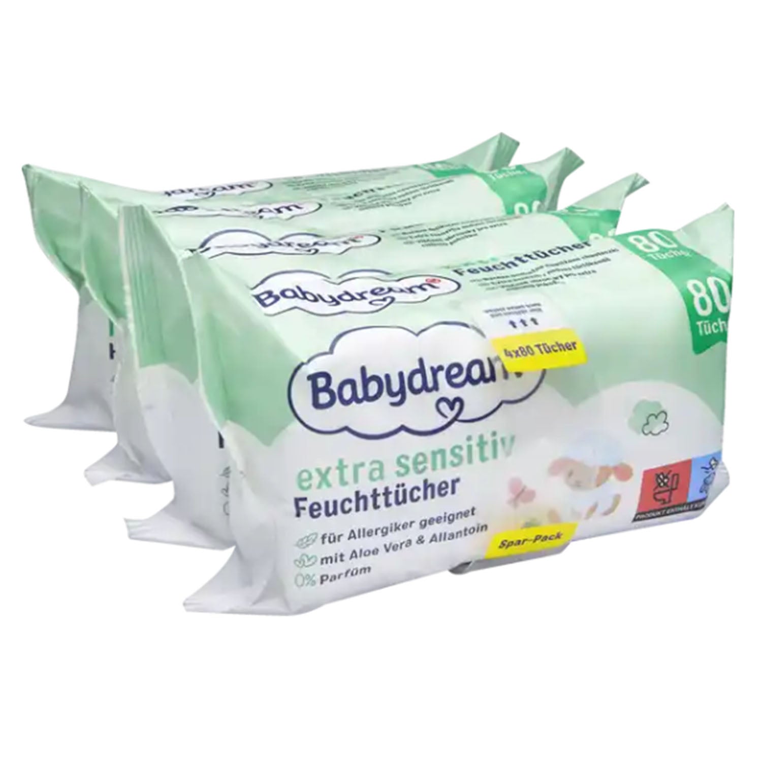 Babydream extra sensitive Feuchttücher Quattro-Pack (4x80 Tücher)