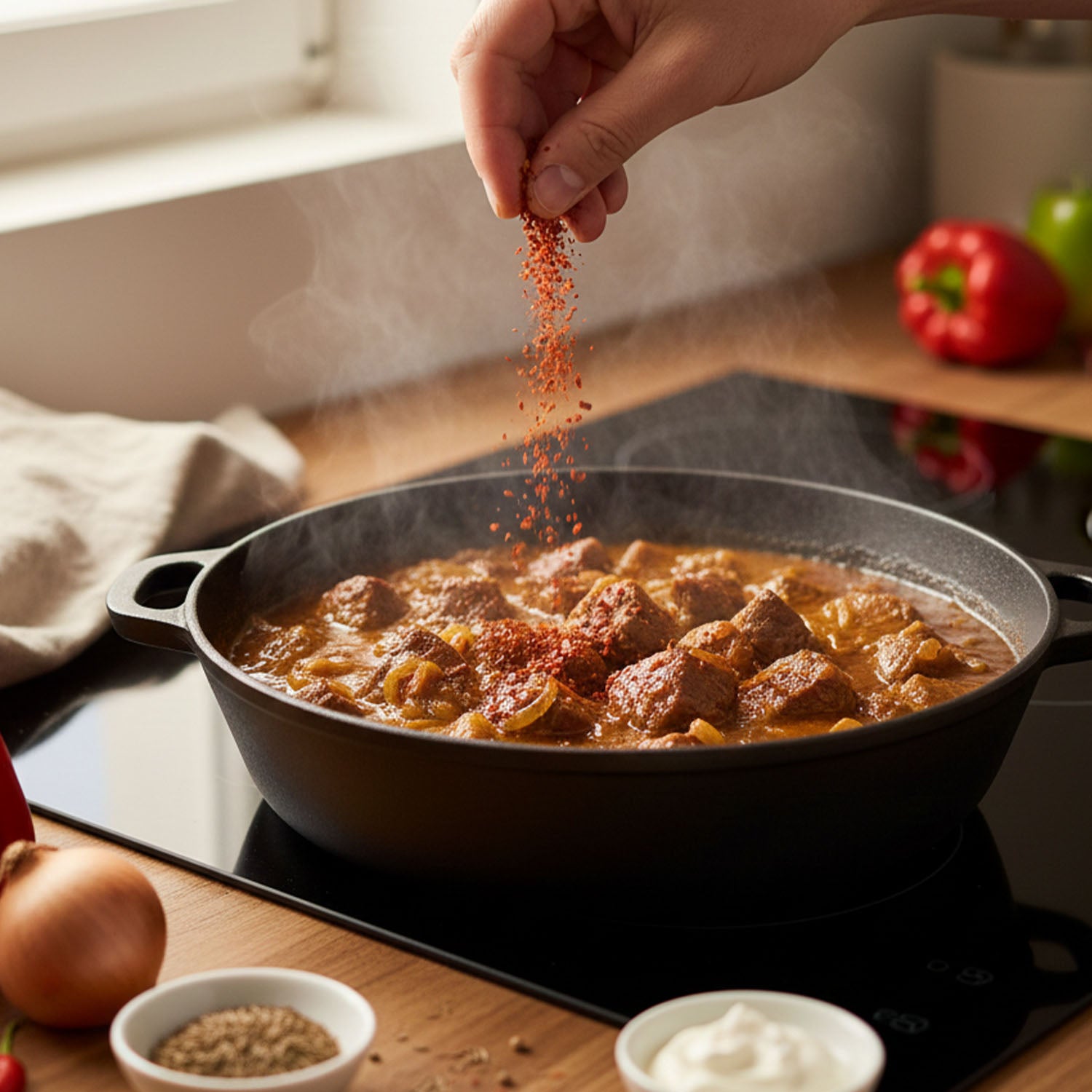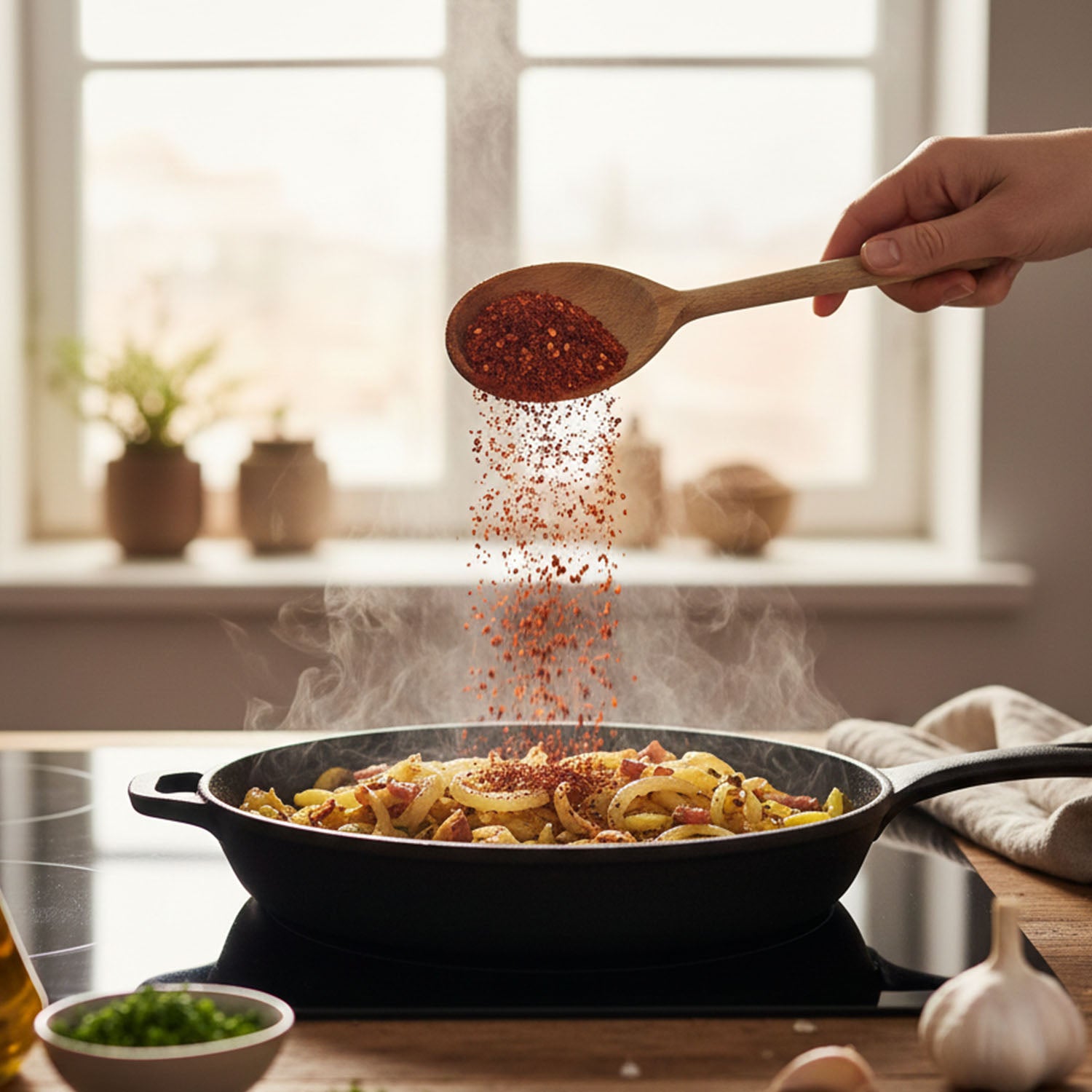 Zutaten: Paprikaflocken, Pflanzenöl, Salz, Gewürzezubreitung