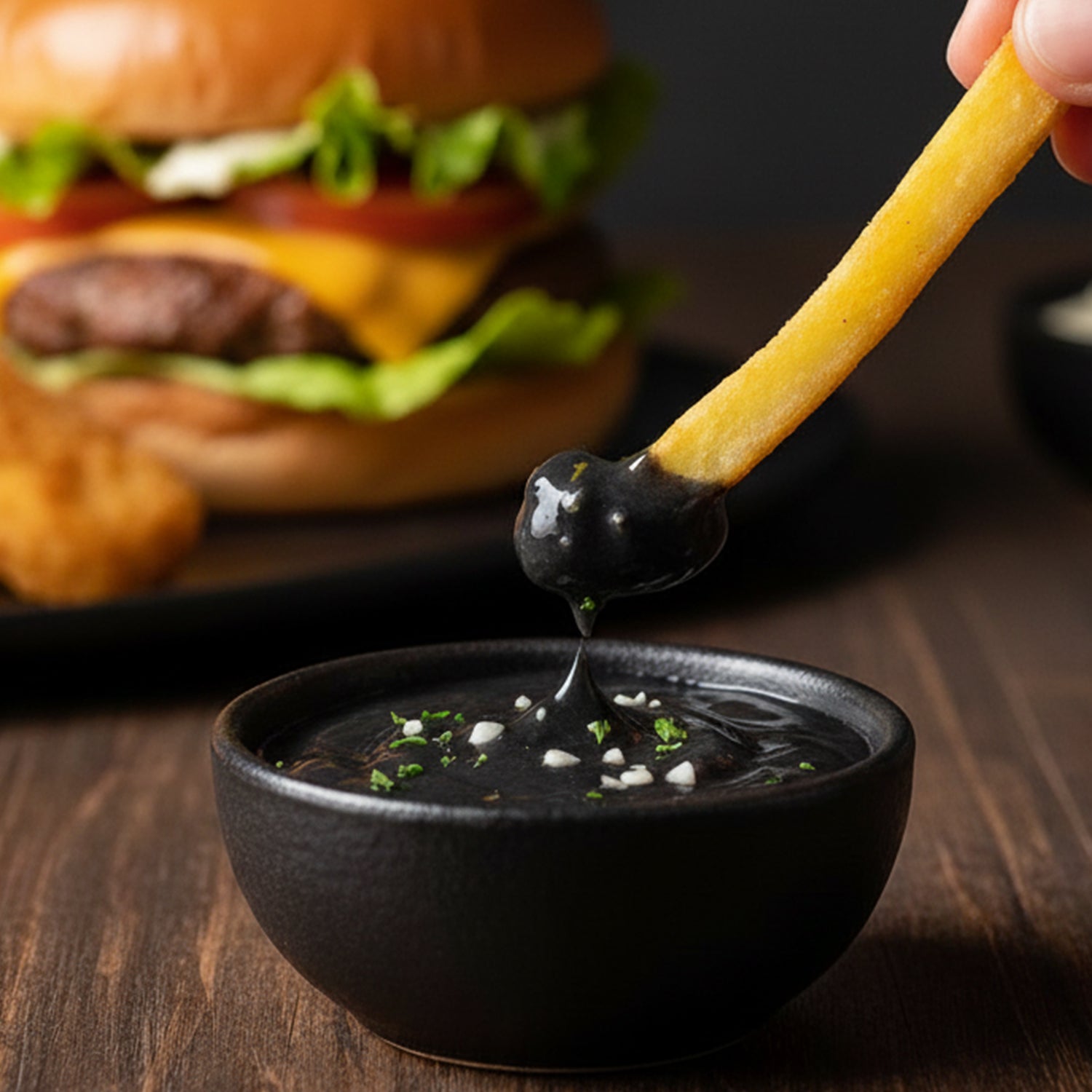 Vielseitige Verwendung: Die Schwarze Knoblauch-Mayonnaise passt hervorragend als Dip zu Pommes frites, Chips, Hamburgern, gegrilltem Fleisch oder Hähnchen. Sie ist auch ideal, um Sandwiches, Wraps und Salaten eine geheimnisvolle und würzige Geschmacksnote zu verleihen. Die cremige Textur garantiert bei jedem Bissen ein unvergessliches Geschmackserlebnis.